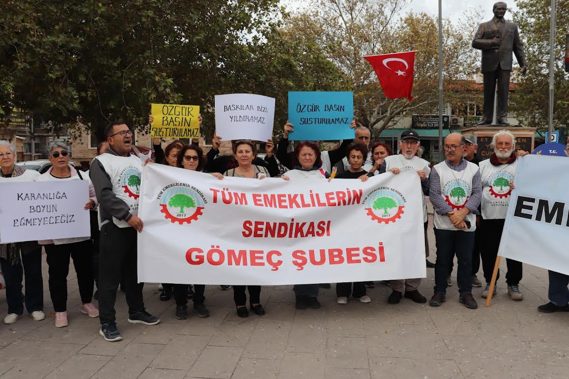 Gömeç Emek Ve Demokrasi Bileşenleri bugün Cumhuriyet Meydanı'nda yaptığı kitlesel basın açıklaması ile TELE 1 TV'ye kayyum atanması ve Genel Yayın Yönetmeni Merdan Tanardağ'ın tutuklanmasına tepki göstererek,basın üzerindeki baskılara derhal son verilmesi istendi.Tüm bu olanların temel insan haklarından olan haber alma özgürlüğü önünde engel olduğuna vurgu yapılan açıklamayı Mustafa AliAltınöz okudu.