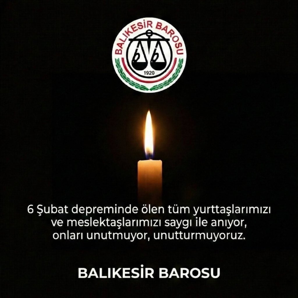Balıkesir Barosu olarak doğal afetlerin bilimden ve akıldan yoksunluğa gerekçe olarak sunulmaması, afetler öncesi ve sonrası için gerekli önleyici ve koruyucu tedbirlerin bilimin ve aklın ışığında alınması, tüm gerçek ve tüzel kişilerin faaliyetlerinde doğal afetlere ilişkin hukuki sorumluluklarını yerine getirmesi, yasal mevzuatın doğal afetlerin öncesinde ve sonrasında yaşanacak hak ihlallerinin önlenebileceği şekilde oluşturulması ve doğal afetler sonucunda başta yaşam hakkı olmak üzere insan haklarının ihlal edilmesi sonucuna yol açılmaması için her türlü mücadeleye devam edeceğimizi tekrar ediyor; 6 Şubat depreminde ölen tüm yurttaşlarımızı ve meslektaşlarımızı saygı ile anıyor,onları unutmuyor, unutturmuyoruz.”