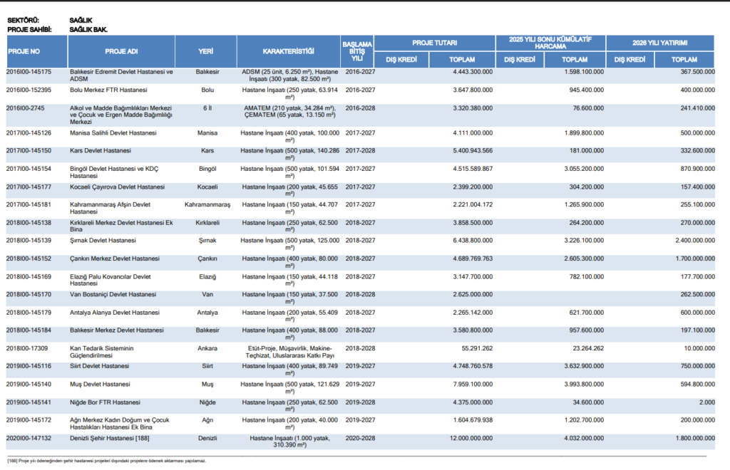 Dr. Fikret ŞAHİN açıklamasının devamında şunları söyledi.  Cumhurbaşkanlığı yatırım programına göre; Balıkesir Merkez Devlet Hastanesinin 400 yataklı ek binasının yatırım maliyetinin 3 milyar 580 milyon 800 bin TL, bu zamana kadar harcanan bütçe 957 milyon 600 bin TL ve 2026 yılı için ayrılan bütçenin 197 milyon 100 bin TL olduğunu görüyoruz.