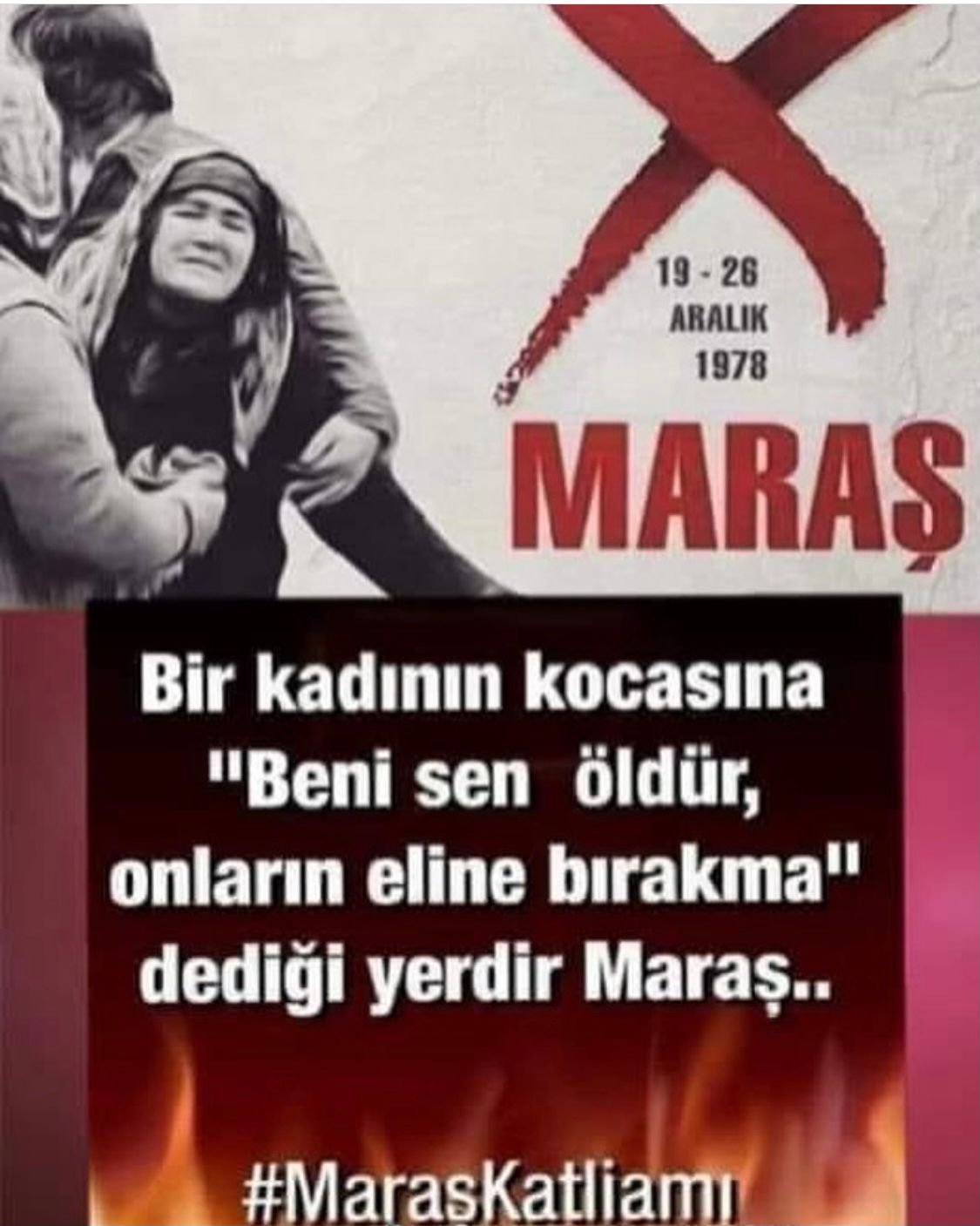 Bu topraklarda bundan sonra bu katliamların. acıların bir daha yaşanmaması dileğiyle, Maraş katliamının 43. yılında yitirdiğimiz Canlarımızı saygı ve Özlem ile anıyorum.